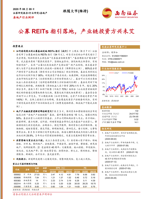 【西南证券】【20200809】房地产行业例评:公募REITs指引落地,产业链投资方兴未艾-24页