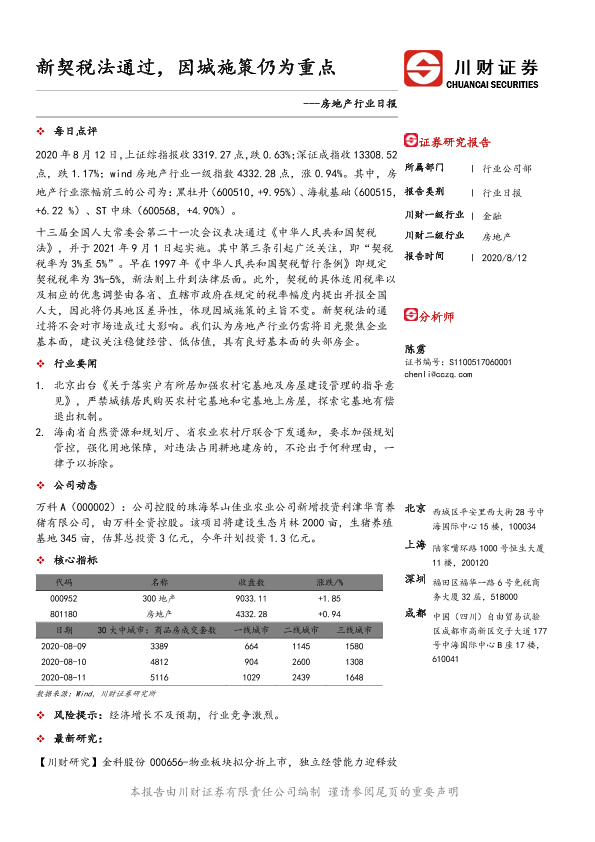 【川财证券】【20200812】房地产行业日报:新契税法通过,因城施策仍为重点-3页