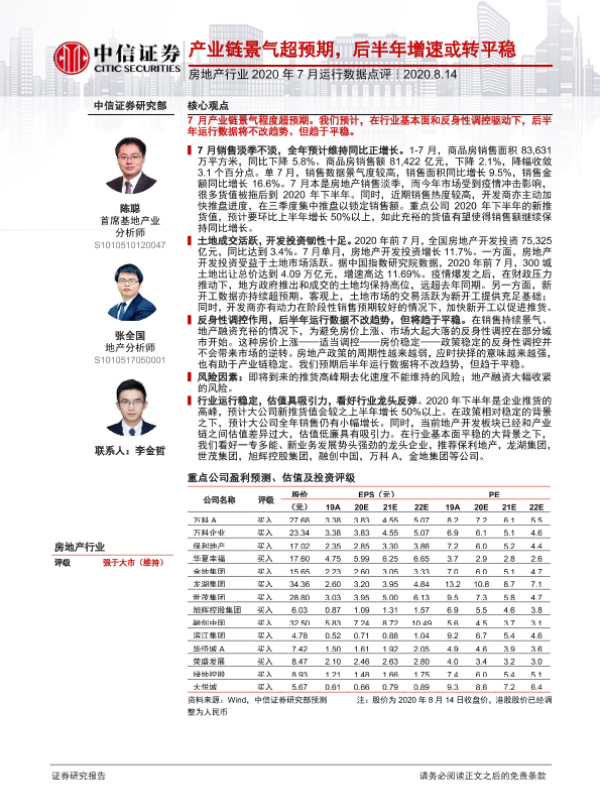 【中信证券】【20200814】房地产行业2020年7月运行数据点评-10页