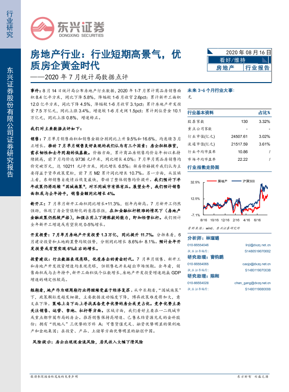 【东兴证券】【20200816】2020年7月统计局数据点评:房地产行业:行业短期高景气,优质房企黄金时代-9页