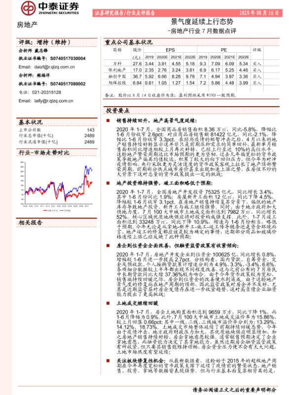 【中泰证券】【20200816】房地产行业7月数据点评:景气度延续上行态势-4页