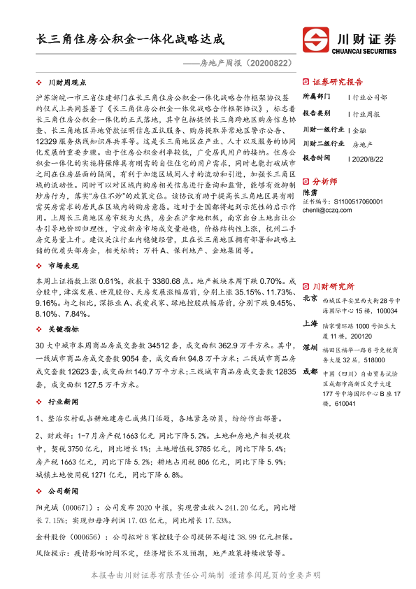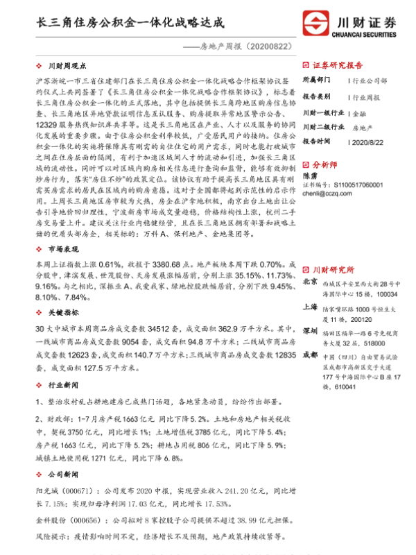 【川财证券】【20200822】长三角住房公积金一体化战略达成-10页