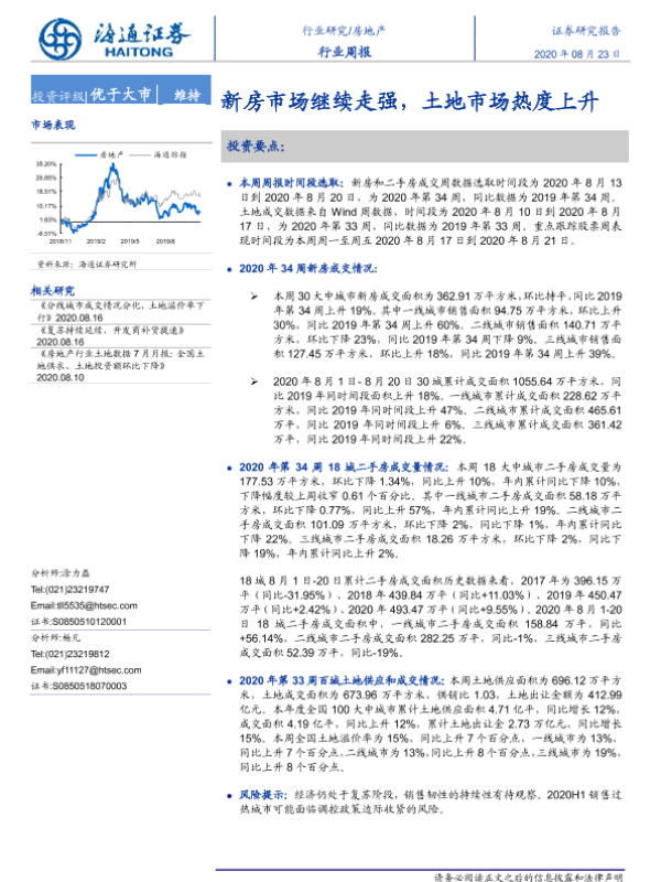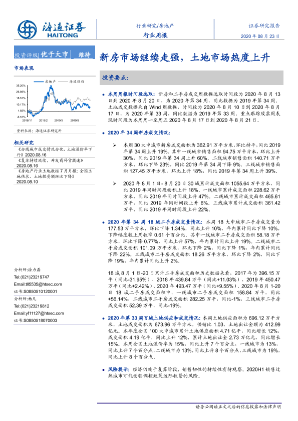 【海通证券】【20200823】房地产行业周报:新房市场继续走强,土地市场热度上升-6页