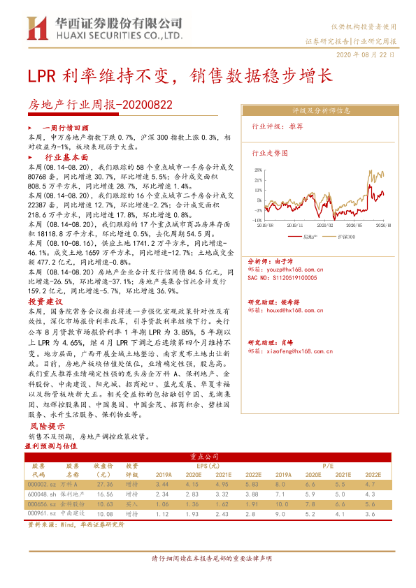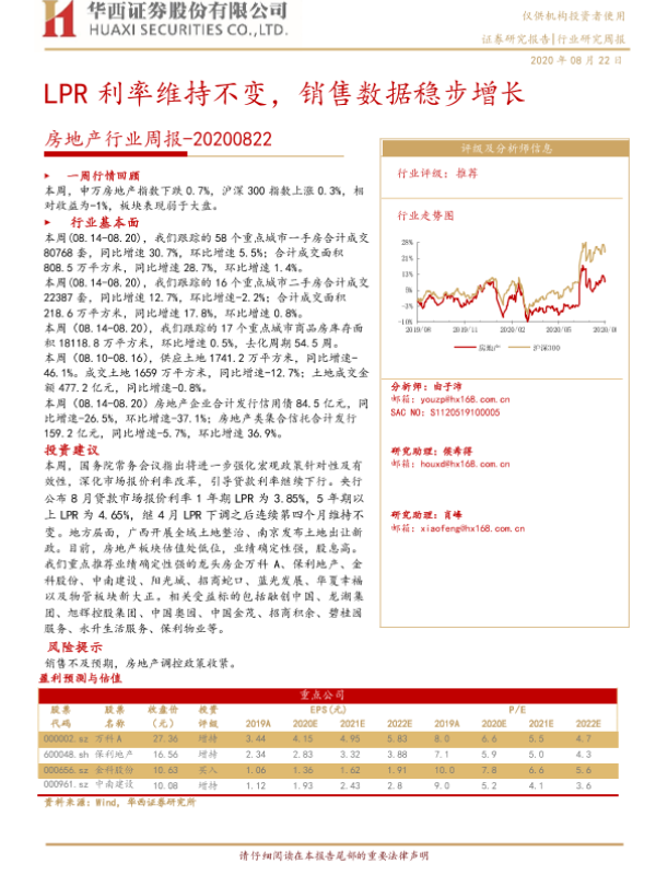 【华西证券】【20200822】房地产行业周报:LPR利率维持不变,销售数据稳步增长-26页