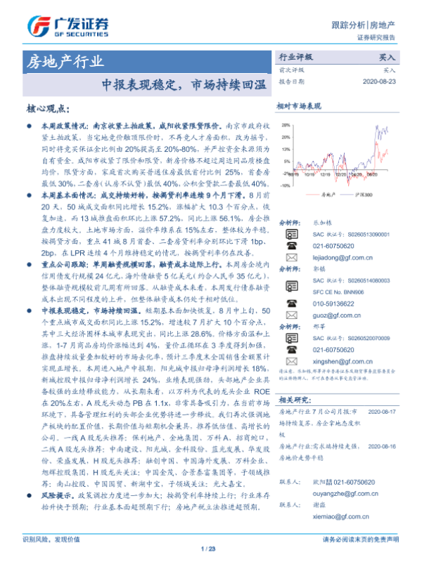 【广发证券】【20200823】房地产行业中报表现稳定,市场持续回温-23页