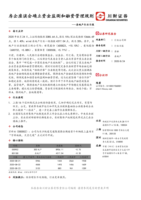 【川财证券】【20200824】房企座谈会确立资金监测和融资管理规则-3页