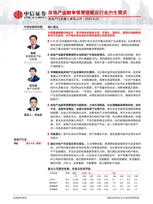 【中信证券】【20200823】房地产行业重大事项点评:房地产金融审慎管理顺应行业内生需求-13页
