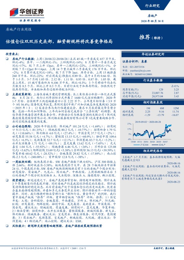 【华创证券】【20200830】房地产行业周报:估值仓位双双历史底部,融资新规料将改善竞争格局-24页