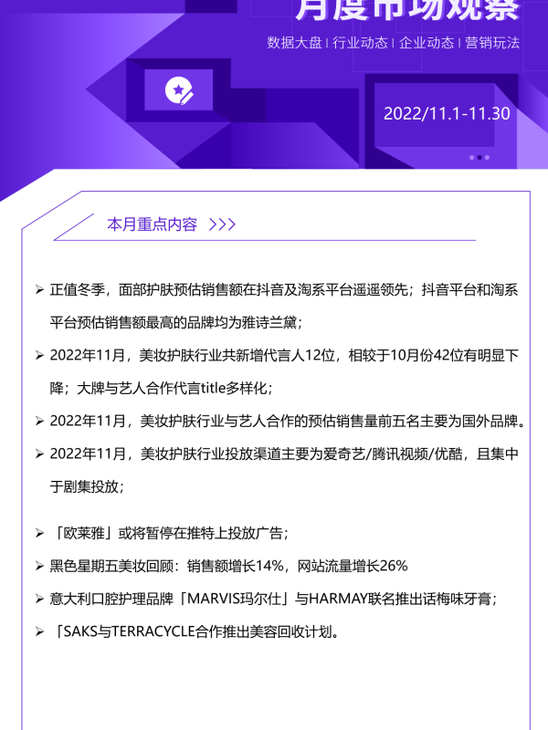 【艺恩ENDATA】【20221101】2022年11月美妆行业月度市场观察-10页