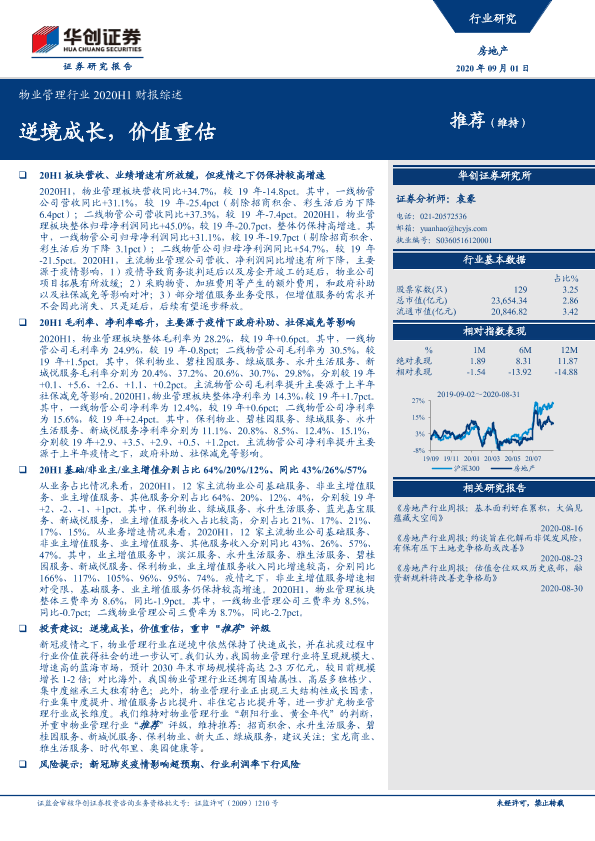 【华创证券】【20200901】物业管理行业2020H1财报综述-14页