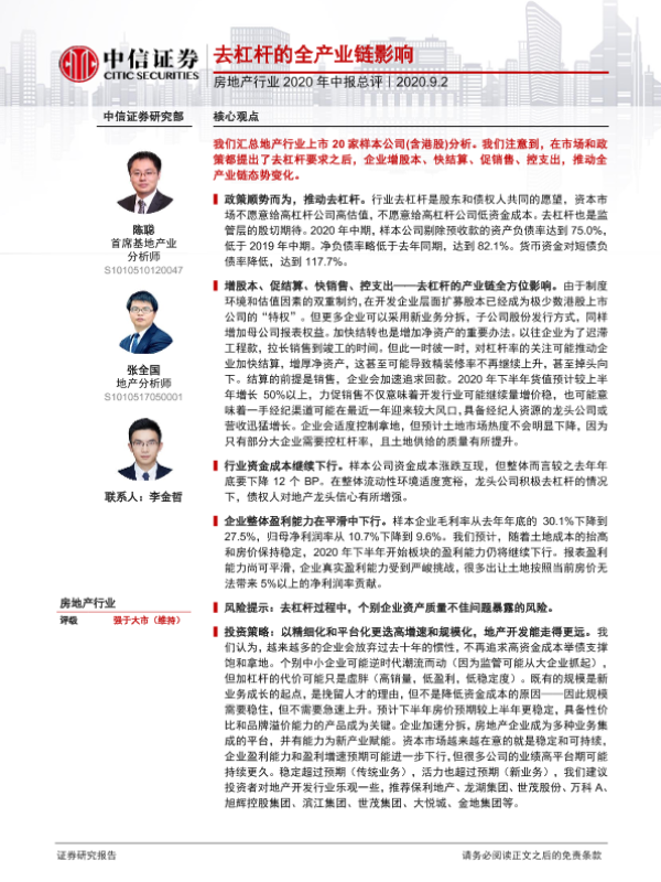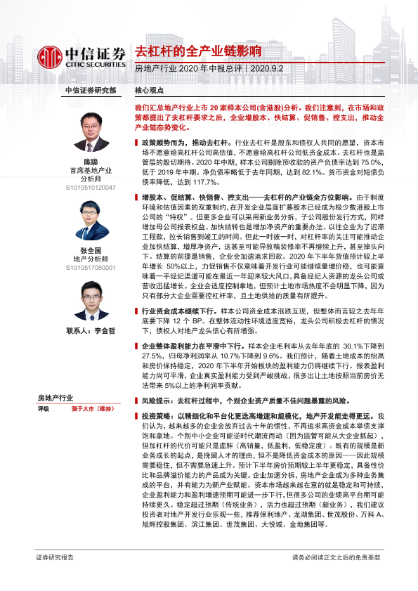【中信证券】【20200902】房地产行业2020年中报总评:去杠杆的全产业链影响-16页