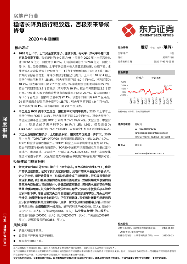 中报回顾 房地产 投资建议 行业趋势 财务分析