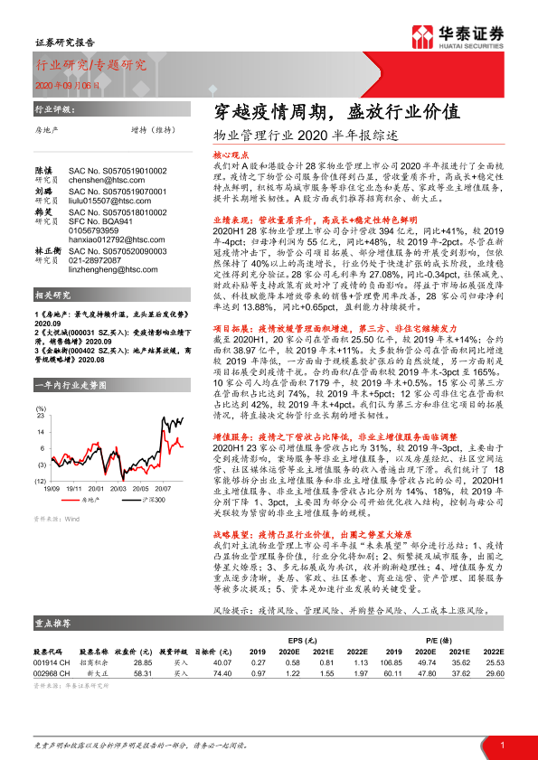 【华泰证券】【20200906】物业管理行业2020半年报综述:穿越疫情周期,盛放行业价值-14页