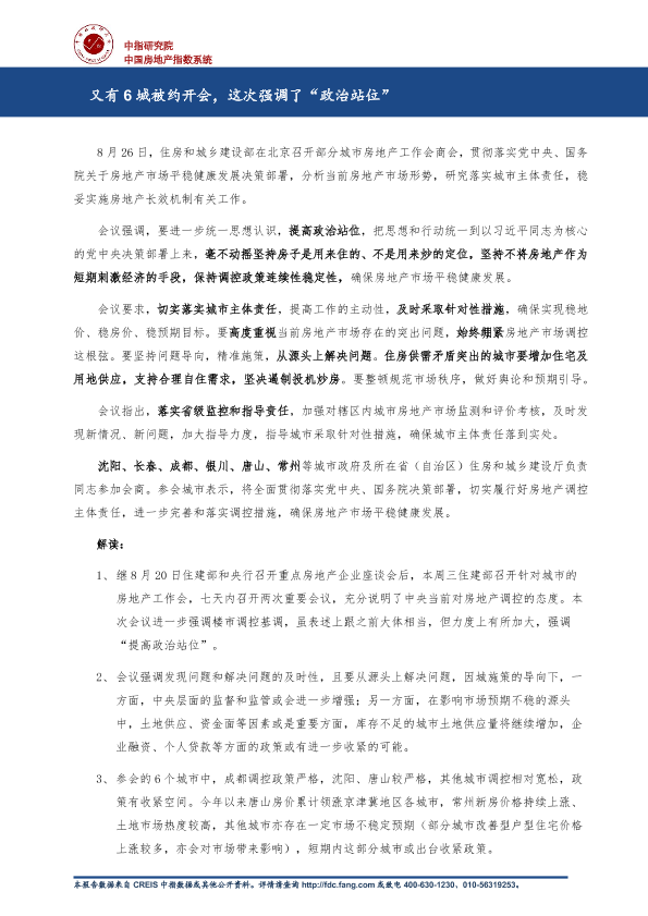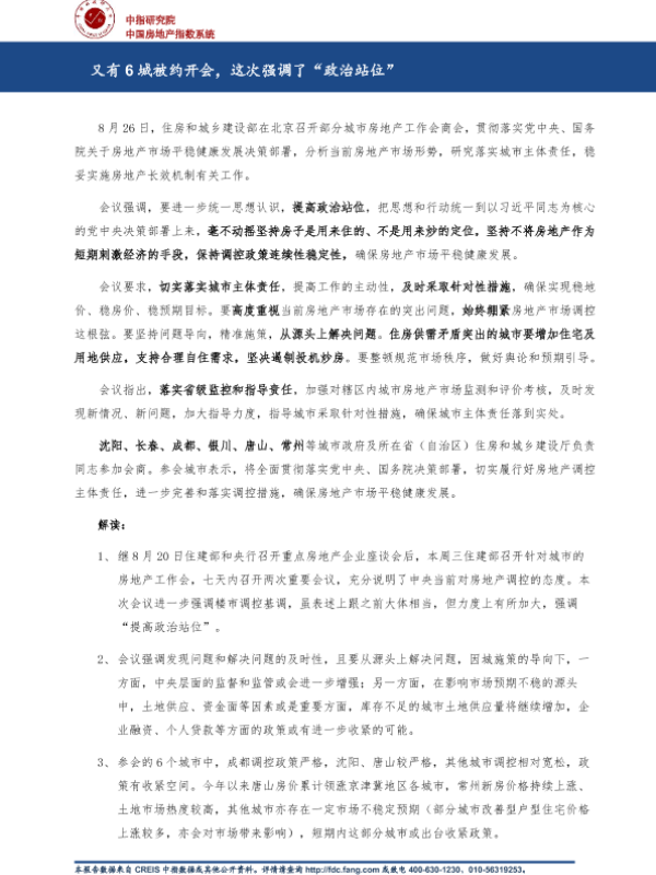 【中指研究院】【20200908】又有6城被约开会,这次强调了“政治站位”-3页