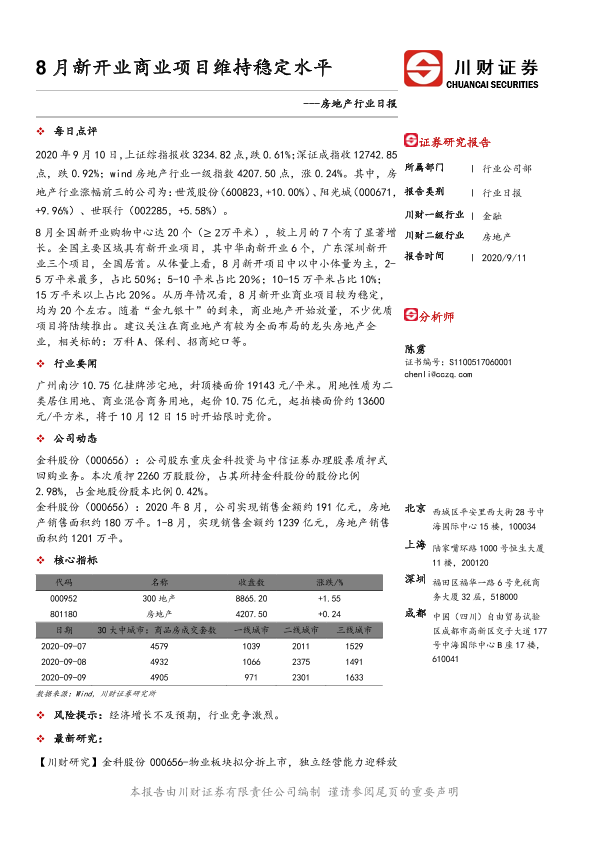 【川财证券】【20200911】8月新开业商业项目维持稳定水平-3页