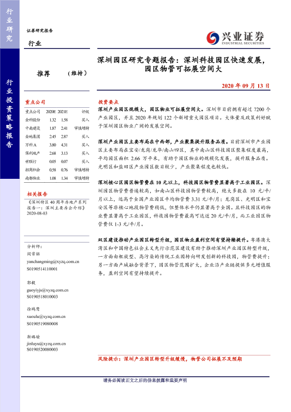 【兴业证券】【20200913】深圳科技园区快速发展,园区物管可拓展空间大-12页