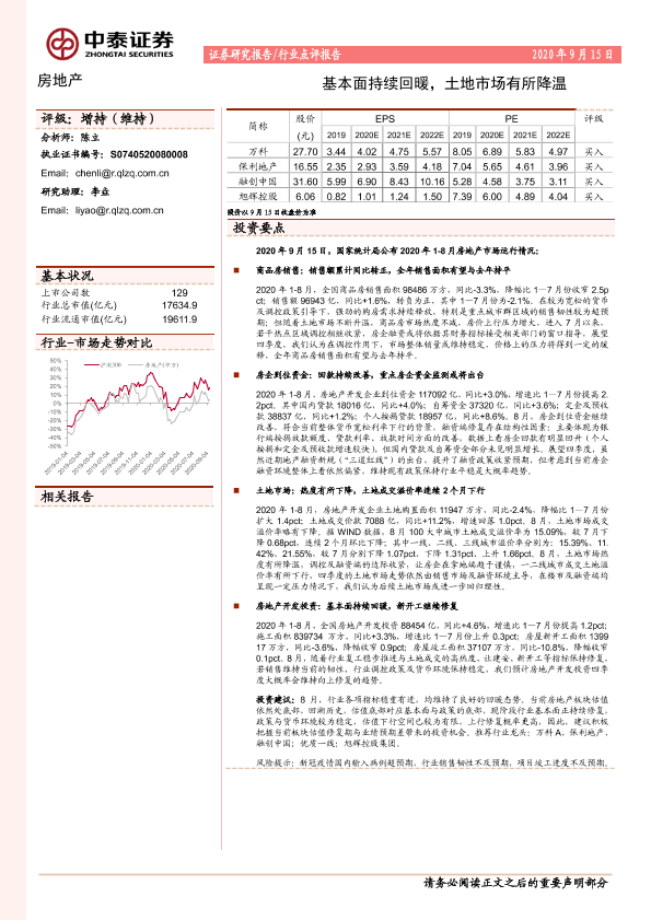 【中泰证券】【20200915】房地产行业点评报告:基本面持续回暖,土地市场有所降温-2页