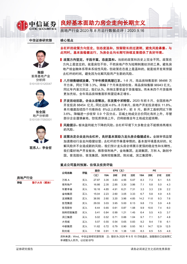 【中信证券】【20200916】房地产行业2020年8月运行数据点评:良好基本面助力房企走向长期主义-10页