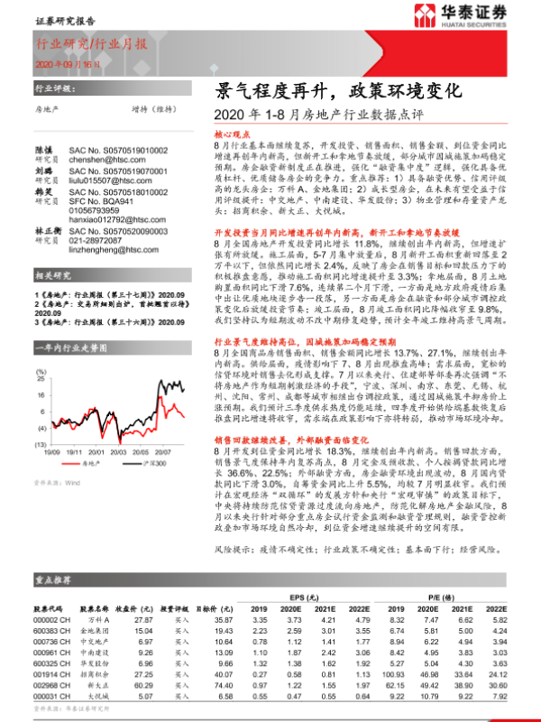 【华泰证券】【20200916】2020年1-8月房地产行业数据点评:景气程度再升,政策环境变化-17页