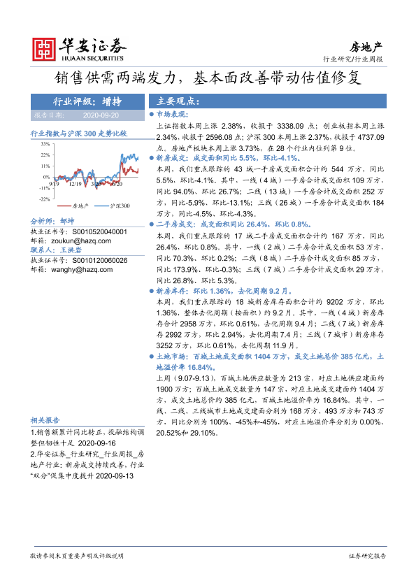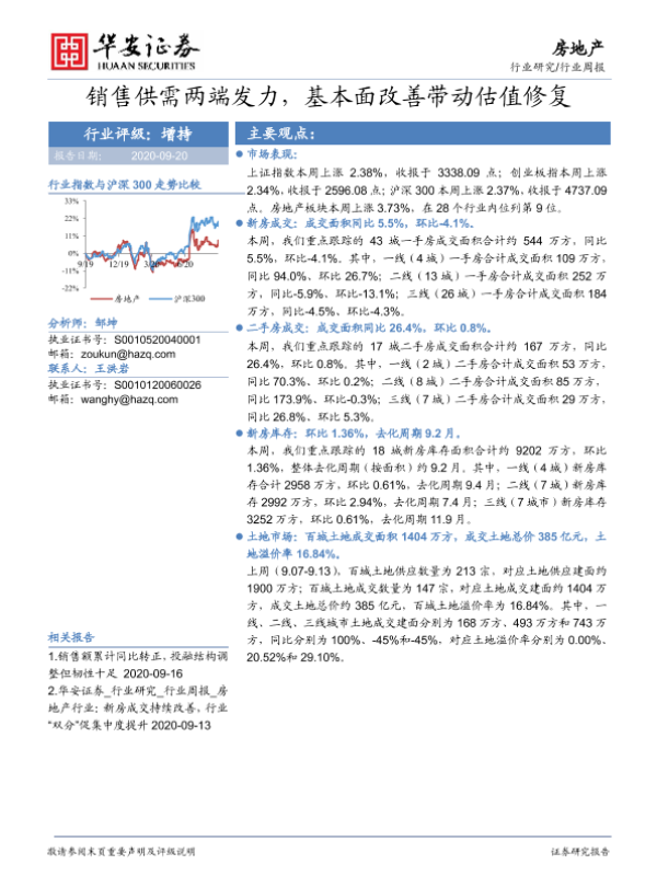 【华安证券】【20200920】房地产行业周报:销售供需两端发力,基本面改善带动估值修复-17页