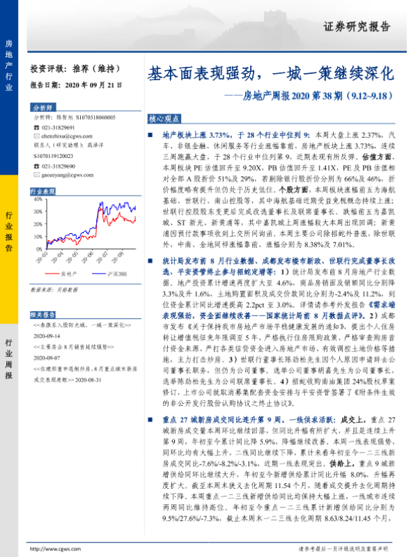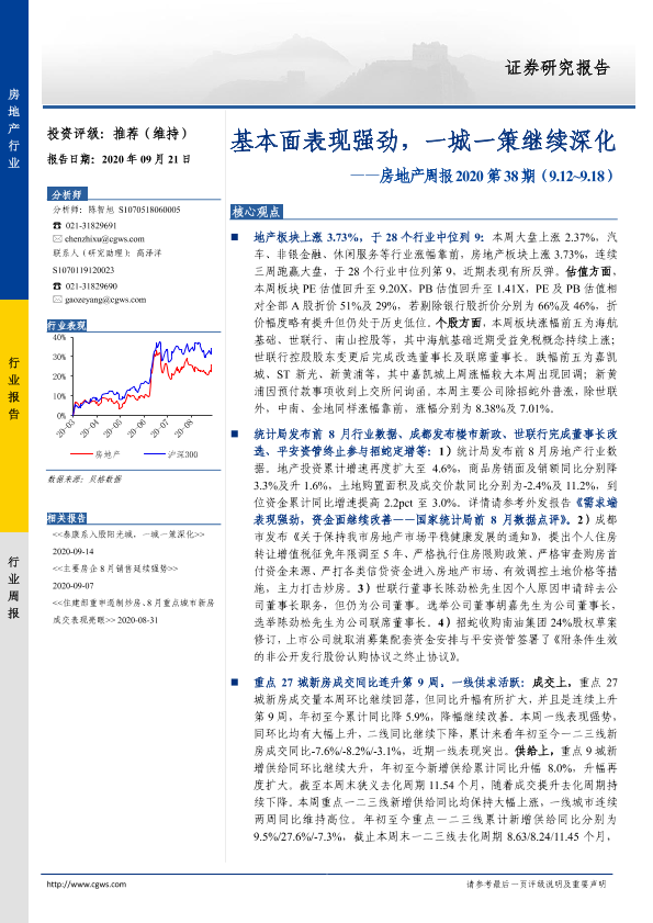 【长城证券】【20200921】房地产周报2020第38期:基本面表现强劲,一城一策继续深化-15页
