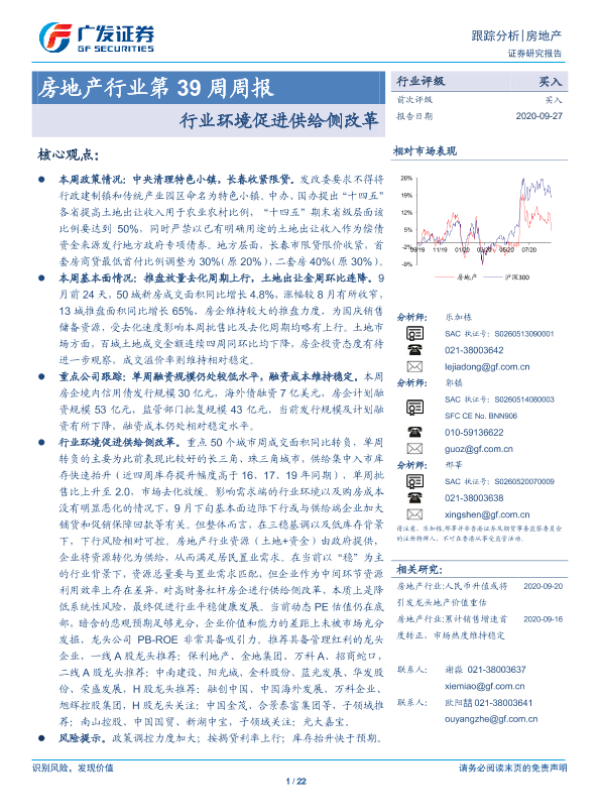 【广发证券】【20200927】房地产行业第39周周报:行业环境促进供给侧改革-22页