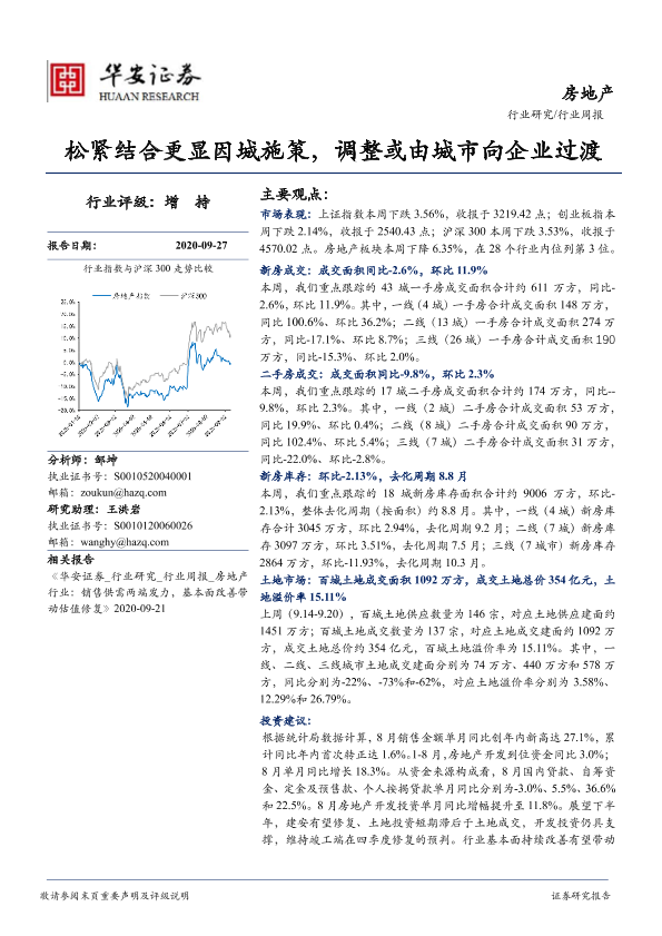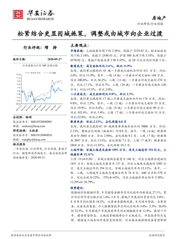 【华安证券】【20200927】房地产行业周报:松紧结合更显因城施策,调整或由城市向企业过渡-16页