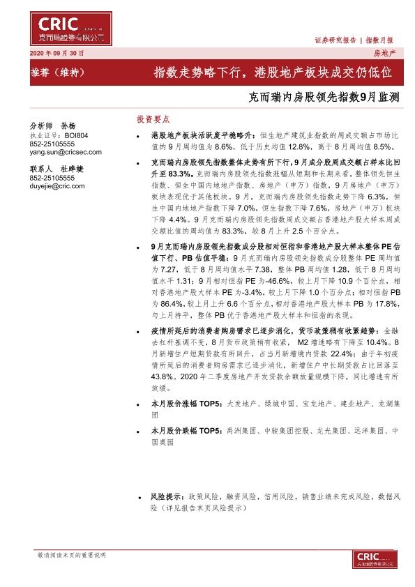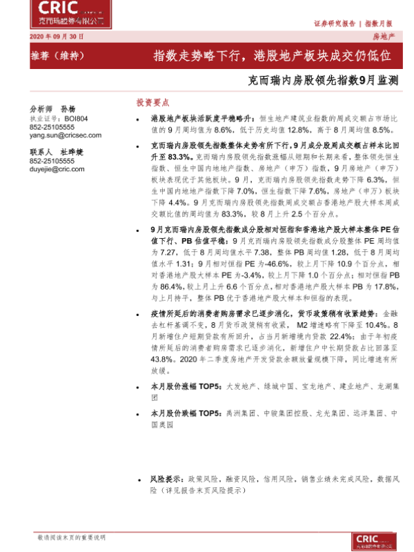 【克而瑞证券】【20200930】克而瑞内房股领先指数9月监测-13页