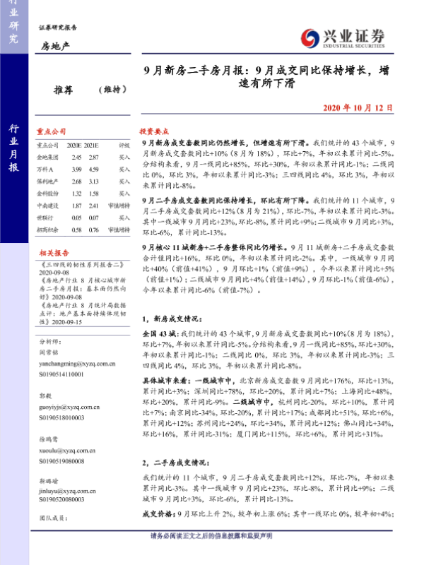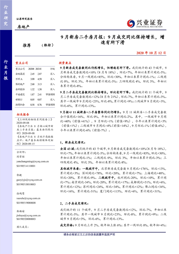 【兴业证券】【20201012】9月新房二手房月报:9月成交同比保持增长,增速有所下滑-18页