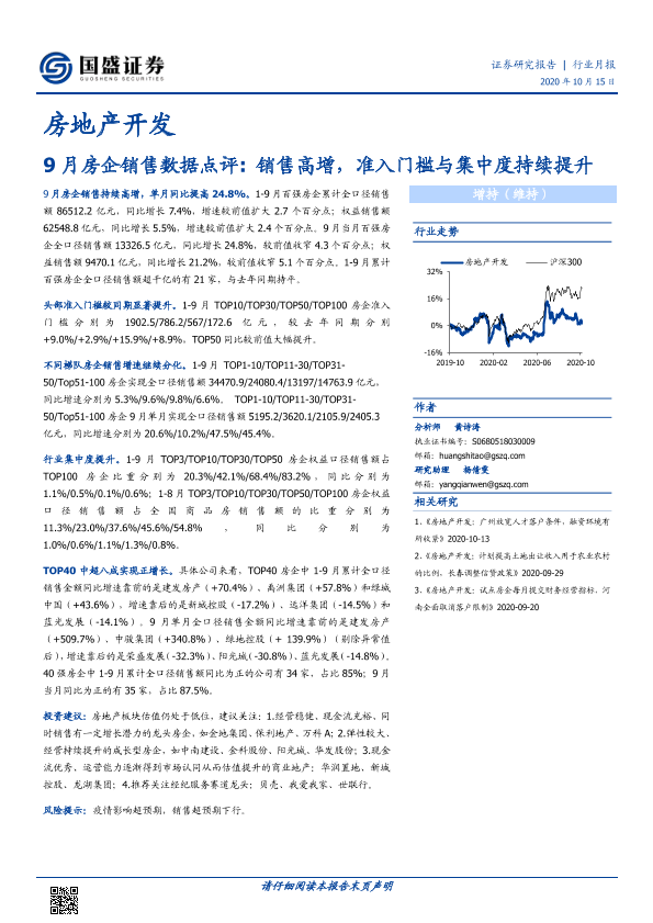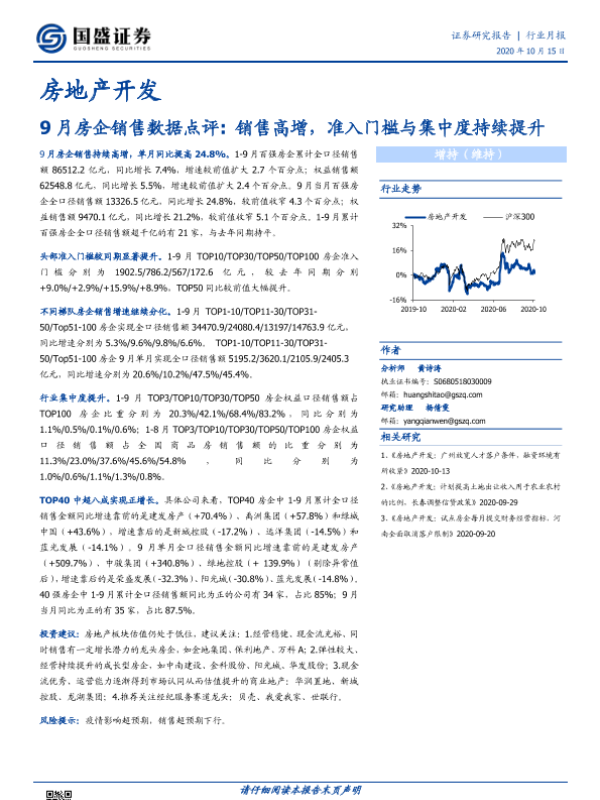 【国盛证券】【20201015】9月房企销售数据点评 销售高增,准入门槛与集中度持续提升-7页
