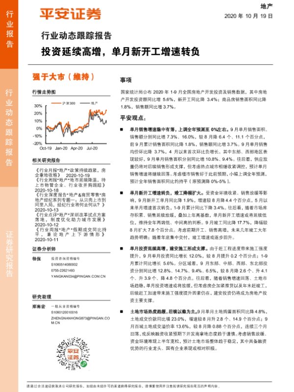 【平安证券】【20201019】地产行业动态跟踪报告:投资延续高增,单月新开工增速转负-16页