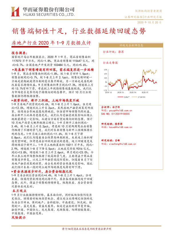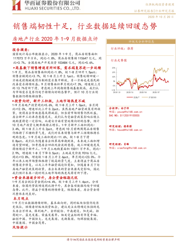 【华西证券】【20201020】房地产行业2020年1-9月数据点评:销售端韧性十足,行业数据延续回暖态势-12页