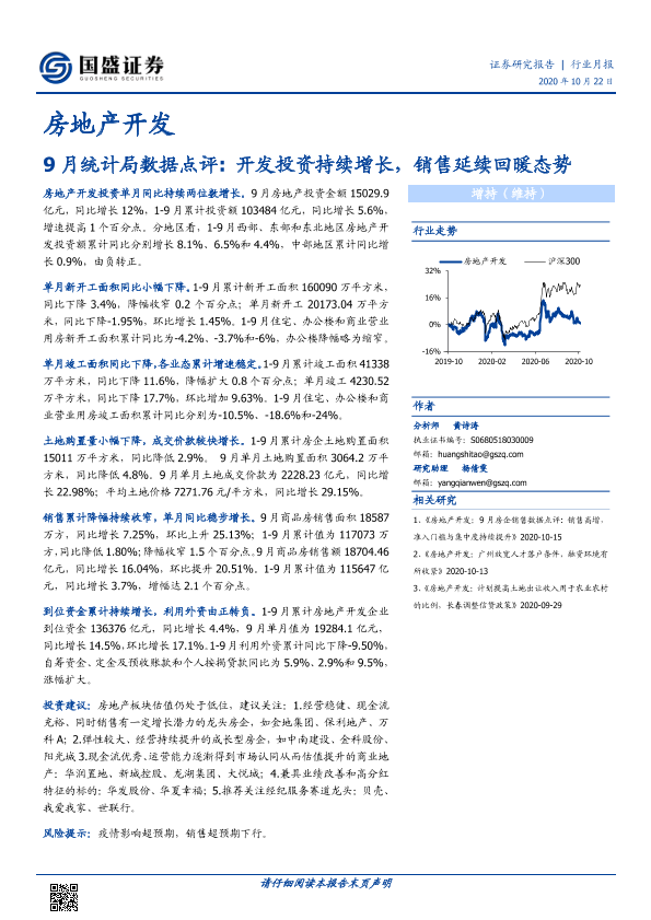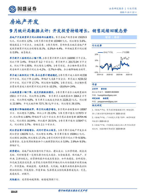 【国盛证券】【20201022】9月统计局数据点评 开发投资持续增长,销售延续回暖态势-13页