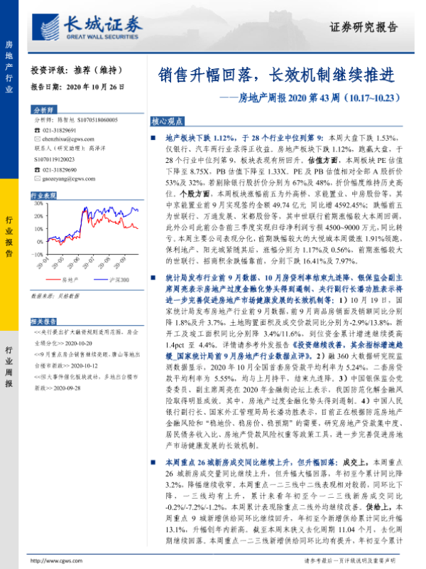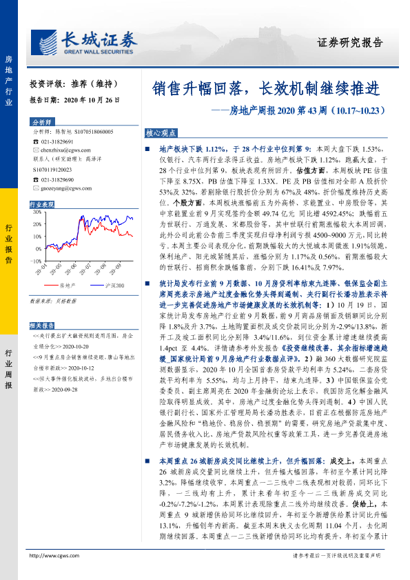 【长城证券】【20201026】销售升幅回落,长效机制继续推进-16页