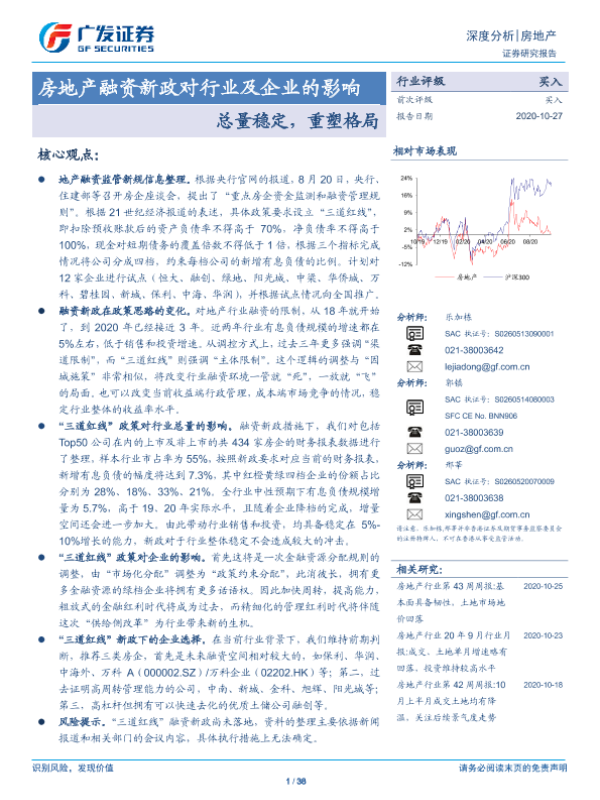 【广发证券】【20201027】房地产融资新政对行业及企业的影响:总量稳定,重塑格局-38页
