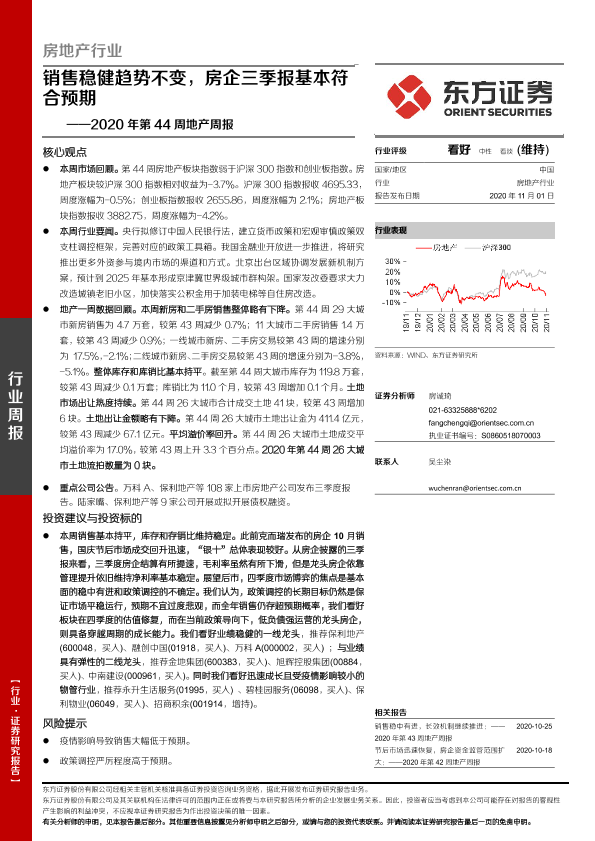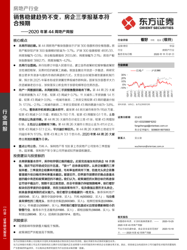 【东方证券】【20201101】销售稳健趋势不变,房企三季报基本符合预期-16页