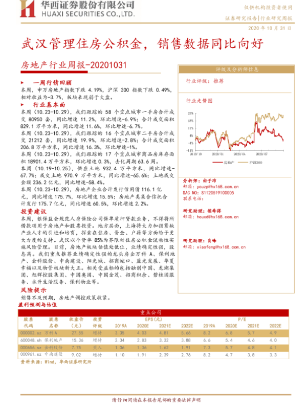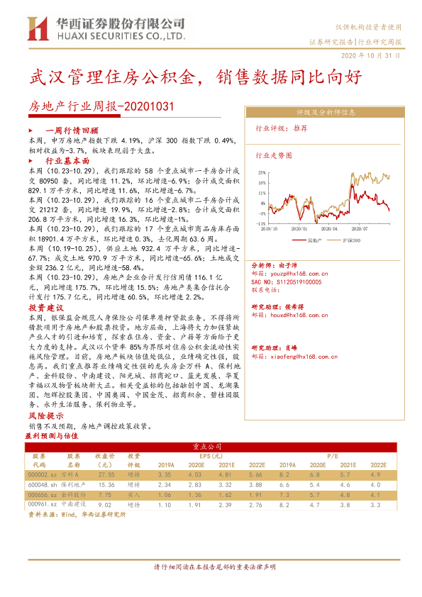 【华西证券】【20201031】房地产行业周报:武汉管理住房公积金,销售数据同比向好-25页