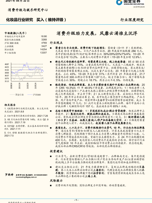 【国金证券】【20210822】化妆品行业研究:消费升级助力发展,风靡云涌谁主沉浮-37页