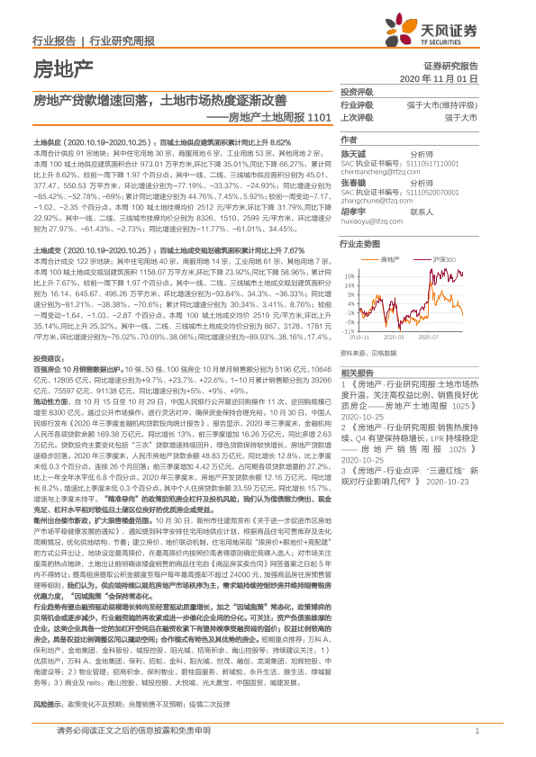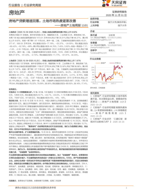 【天风证券】【20201101】房地产土地周报:房地产贷款增速回落,土地市场热度逐渐改善-9页
