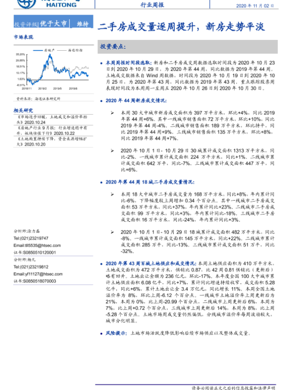 【海通证券】【20201102】房地产行业周报:二手房成交量逐周提升,新房走势平淡-6页