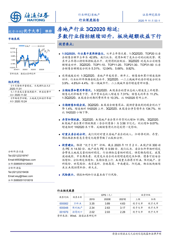 【海通证券】【20201103】房地产行业3Q2020综述:多数行业指标继续回升,板块超额收益下行-26页