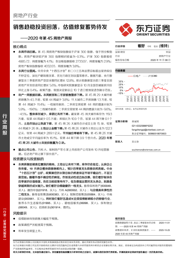 【东方证券】【20201108】房地产行业2020年第45周地产周报:销售趋稳投资回落,估值修复蓄势待发-16页