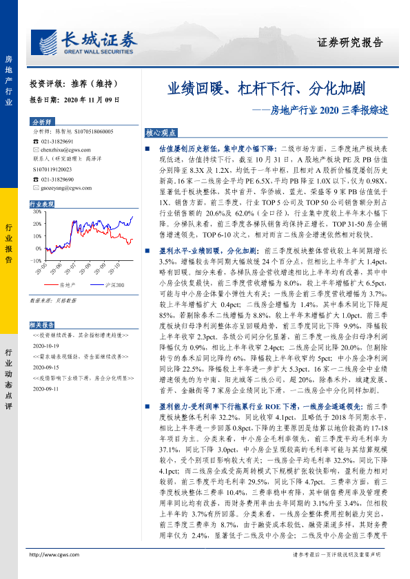 三季报 业绩回暖 分化加剧 房地产行业 杠杆下行