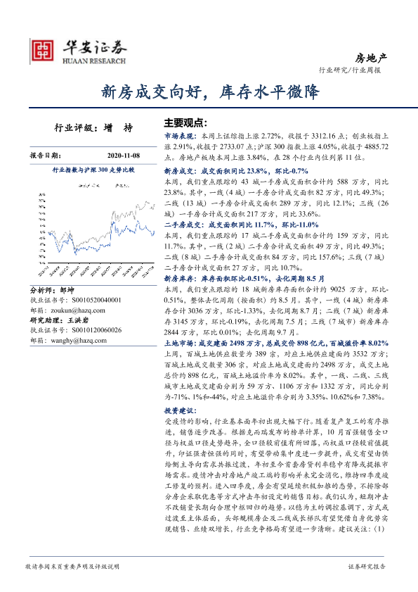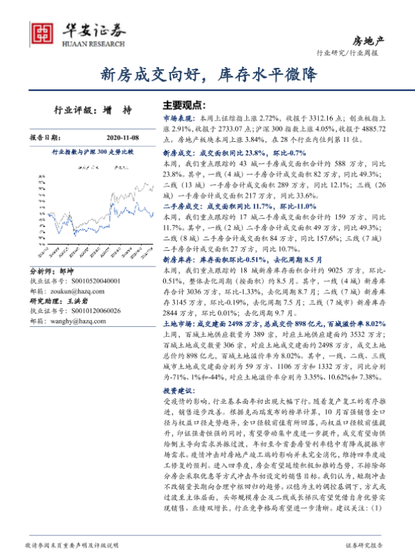 【华安证券】【20201108】房地产行业周报:新房成交向好,库存水平微降-15页