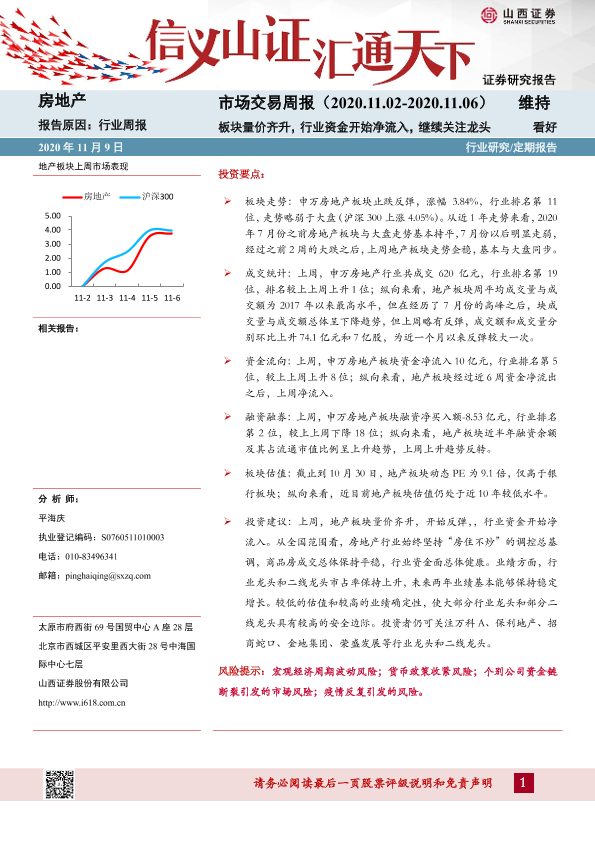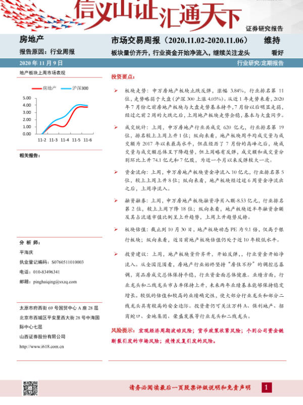 【山西证券】【20201109】房地产市场交易周报:板块量价齐升,行业资金开始净流入,继续关注龙头-20页