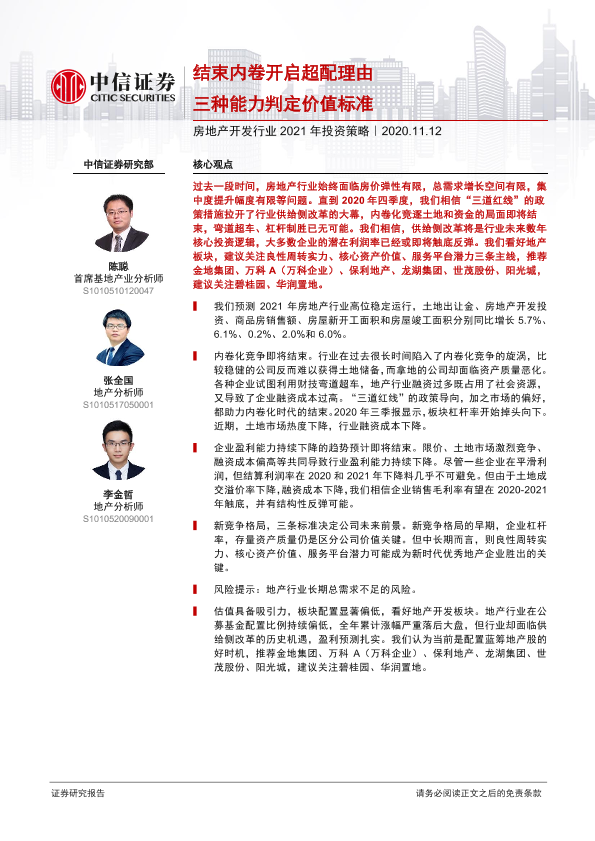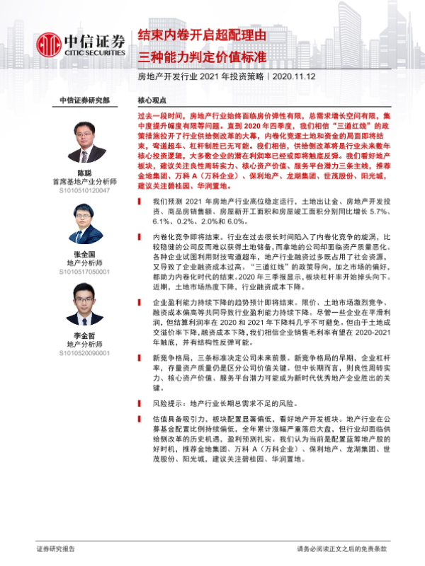【中信证券】【20201112】房地产开发行业2021年投资策略:结束内卷开启超配理由,三种能力判定价值标准-33页