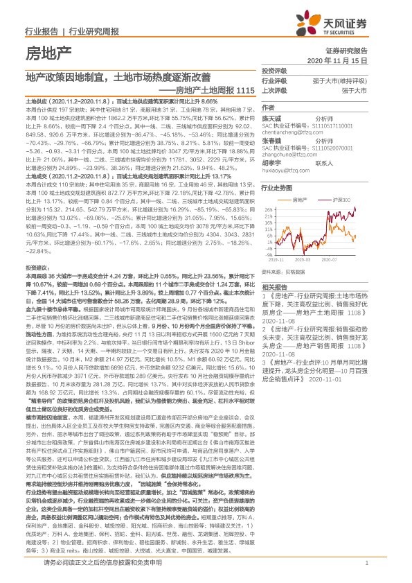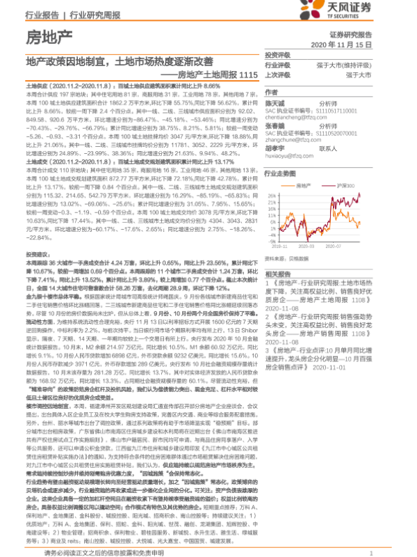 【天风证券】【20201115】地产政策因地制宜,土地市场热度逐渐改善-9页