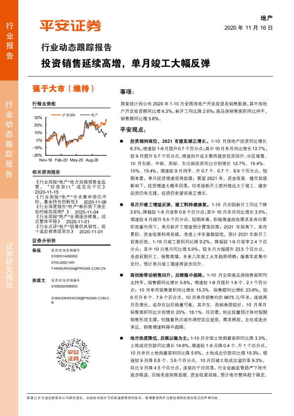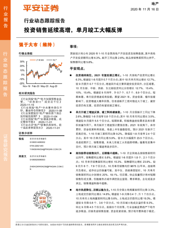 【平安证券】【20201116】地产行业:投资销售延续高增,单月竣工大幅反弹-15页