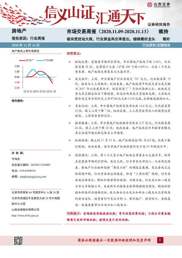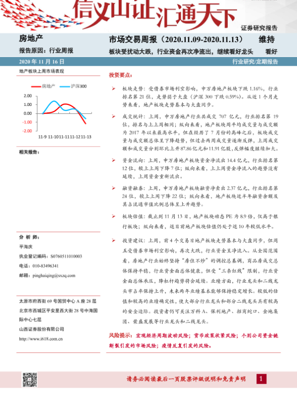 【山西证券】【20201116】房地产市场交易周报:板块受扰动大跌,行业资金再次净流出,继续看好龙头-20页