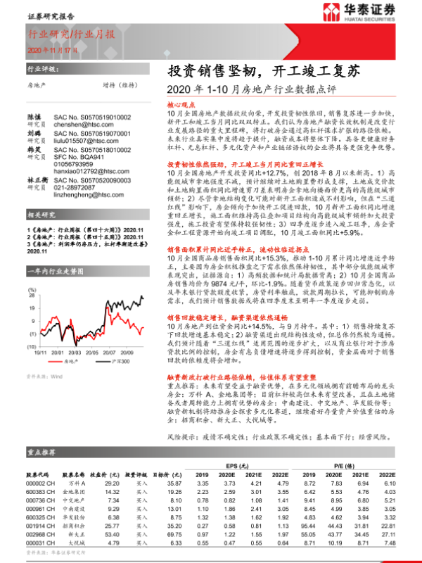 【华泰证券】【20201117】2020年1-10月房地产行业数据点评:投资销售坚韧,开工竣工复苏-18页